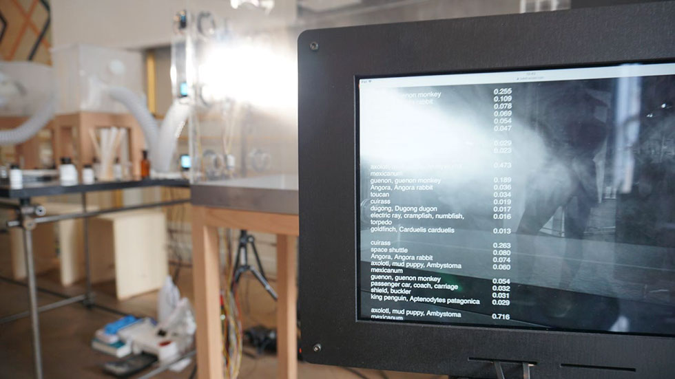 The gaseous, lively, mutable, oscillating, cloudy agent will impose its own rules, while being playfully transformed by heating, cooling, moisturising through a control system of the cloud machinery. Boundaries can be defined by setting the conditions for the vapour to appear, being organized and re-interpreted by a machine learning algorithm.