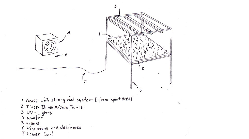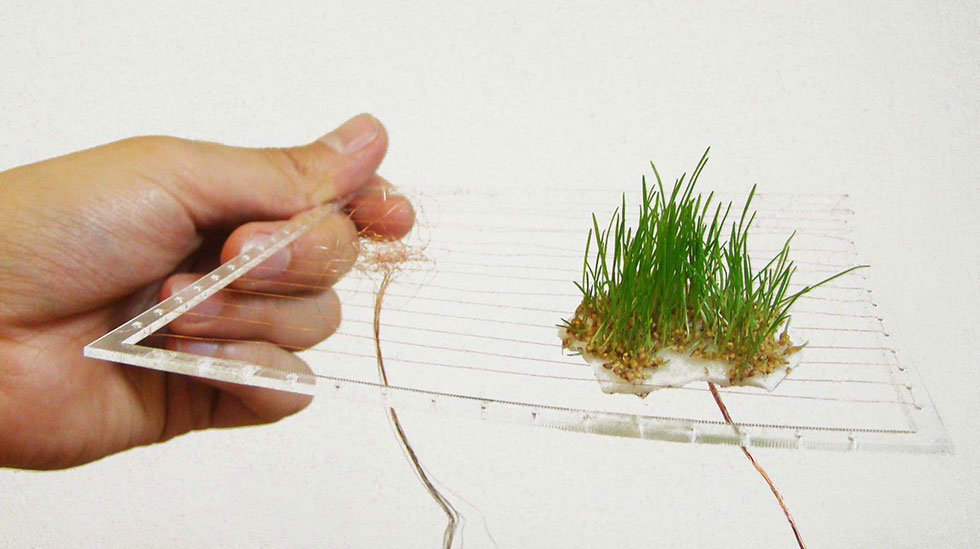 Roots, as sensitive carrier of electro-chemical signals, can give us feedback about the growth of the plant through its electrical conductivity. What if we could hear the grass growing? In a prototype, a microcontroller reads the signals running through different wires, waiting until strands of roots interconnect by growing to play back hear beat like sounds as signals of being alive.