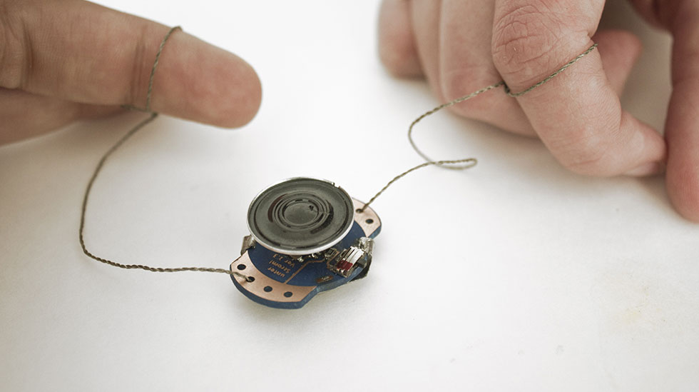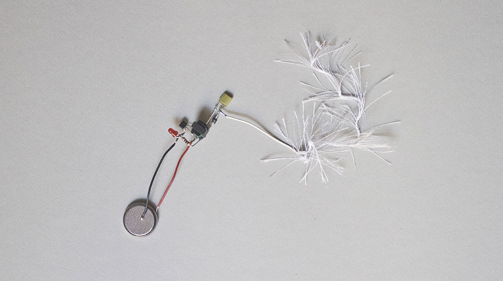 Besides other circuits amplifying subtle amounts of electricity around our human bodies, I wanted to create a material device, which has much more in common with the "body electric" than circuitry. This textile has been designed as an antenna, that responds in an abstract way to our electrically charged surroundings and which creates this tingling feeling by little electric discharges to the body.