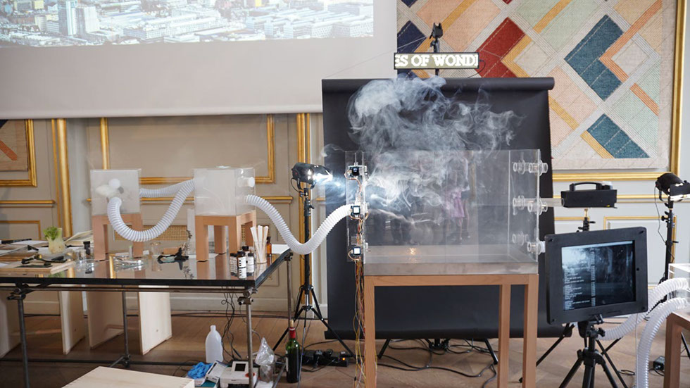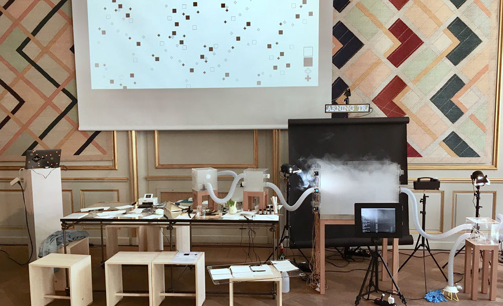 The gaseous, lively, mutable, oscillating, cloudy agent will impose its own rules, while being playfully transformed by heating, cooling, moisturising through a control system of the cloud machinery. Boundaries can be defined by setting the conditions for the vapour to appear, being organized and re-interpreted by a machine learning algorithm.