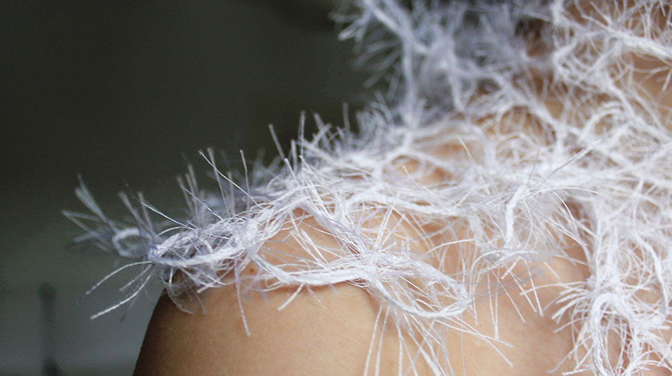 I have created a loose textile by lace-making, that functions as an antenna or capacitor sandwiching conductive and non-conductive structures as well as generating a visual and tactile expression. Electricity gets perceivable by moving the textile hair and tiny electric shocks over time. The hair stands on end like in the hysteria of history or today´s news about the so-called electric smog.
